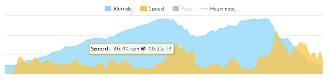 但是Runkeeper畫的速度表又比較合理,真實騎乘速度應該不會像Runtastic這樣上上下下的,